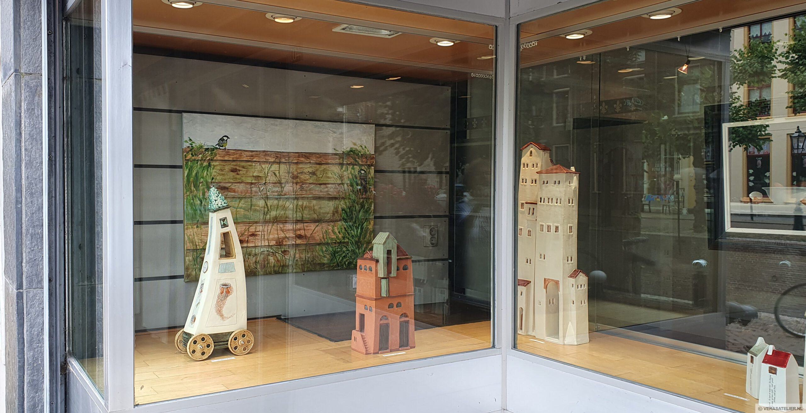 Nu te zien: Schilderij Koolmeespaartje is de komende weken bij Galerie Deerenberg in de etalage te zien met de werken van Jacqueline Tijssen (keramiek) en Aart Verduijn (schilderijen). Galerie Deerenberg,