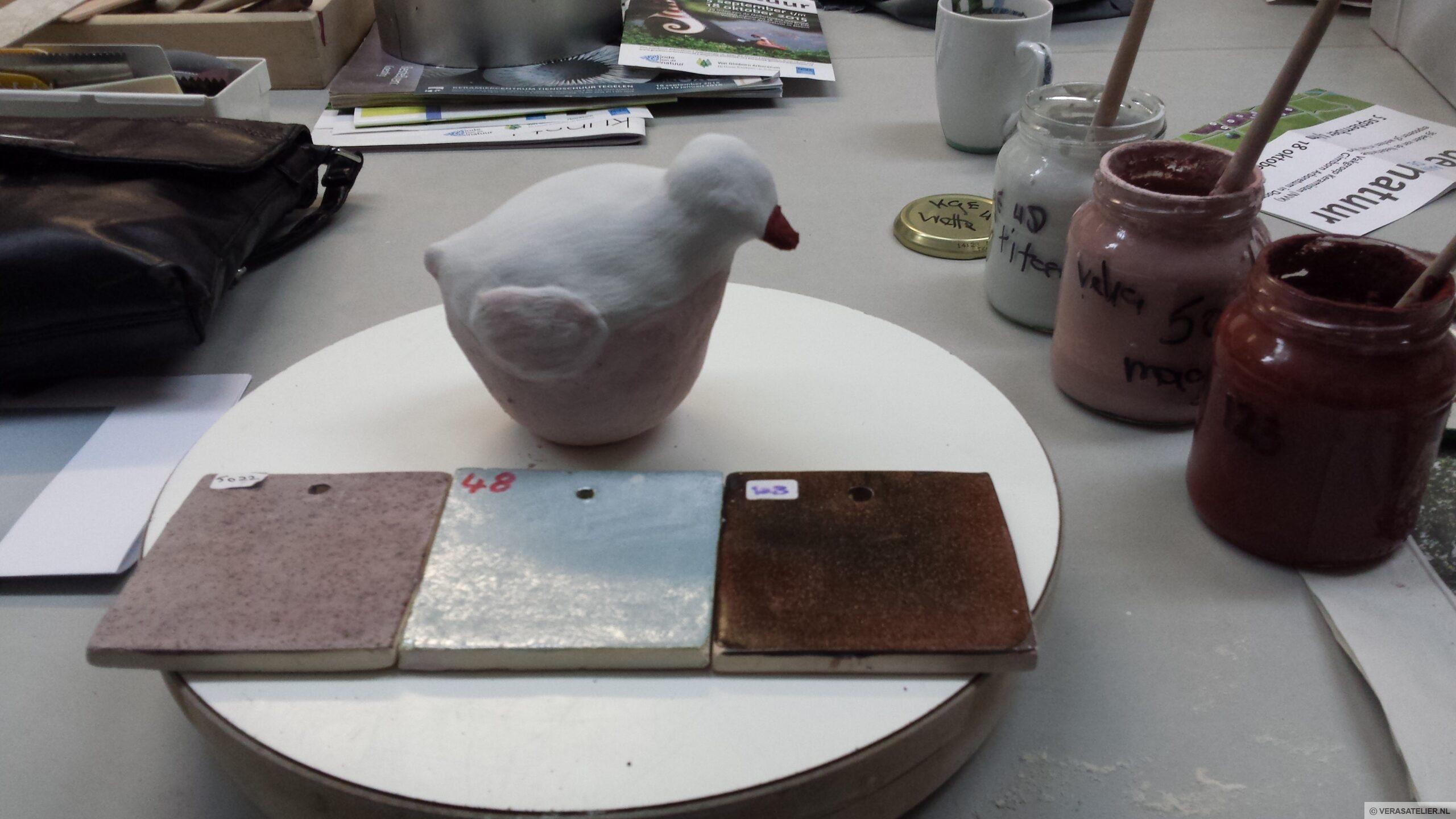 - Techniek : fijne klei met verschillende glazuren bewerkt