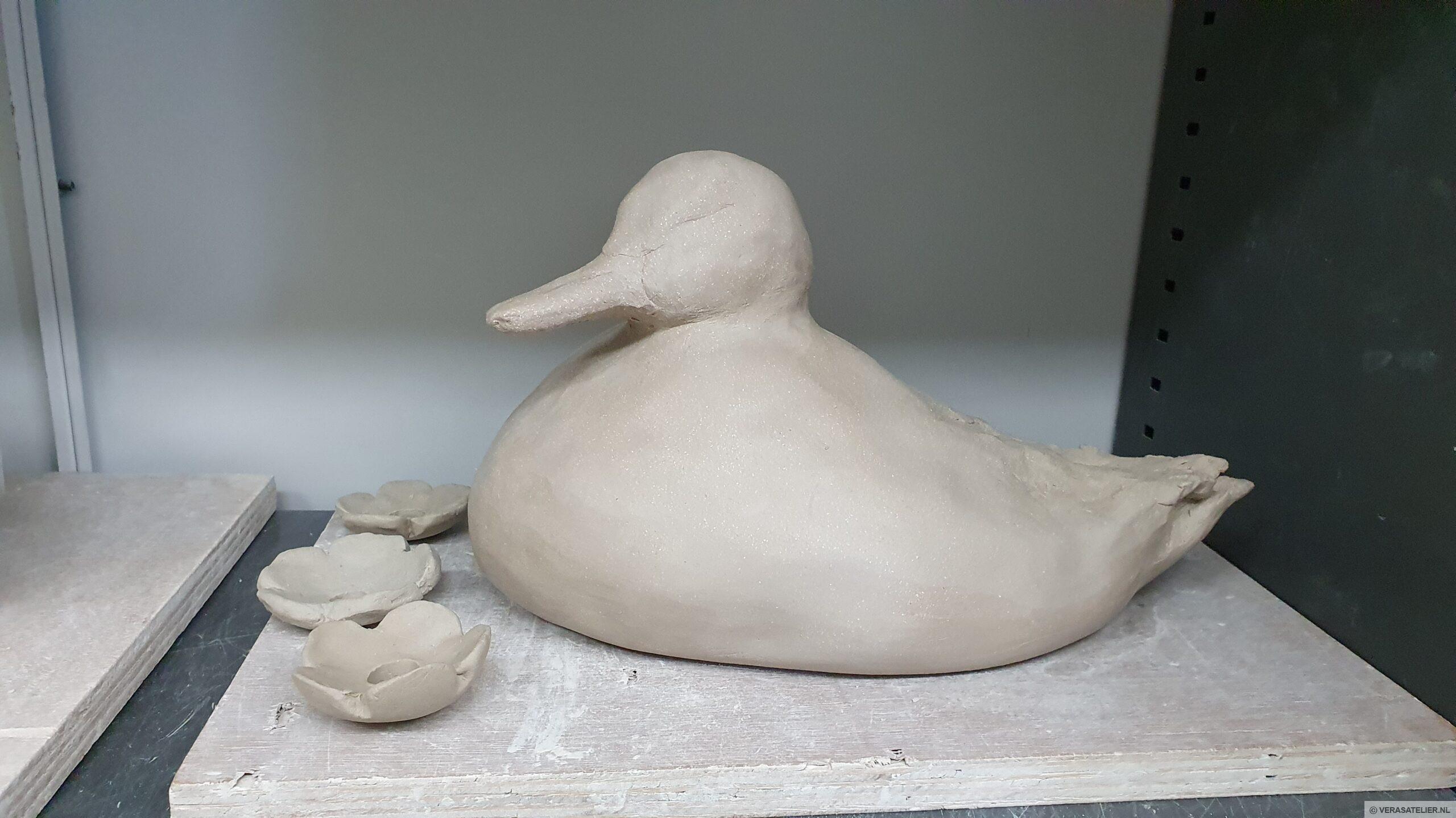 Foto's: Raku klei klaar om te drogen voor de Raku stook. De vuurbrand die ontstaat gelijk na de stook als het werk met het zaagsel in aanraking komt. Onderste foto: na het afkoelen kan er (flink) gepoetst gaan worden.