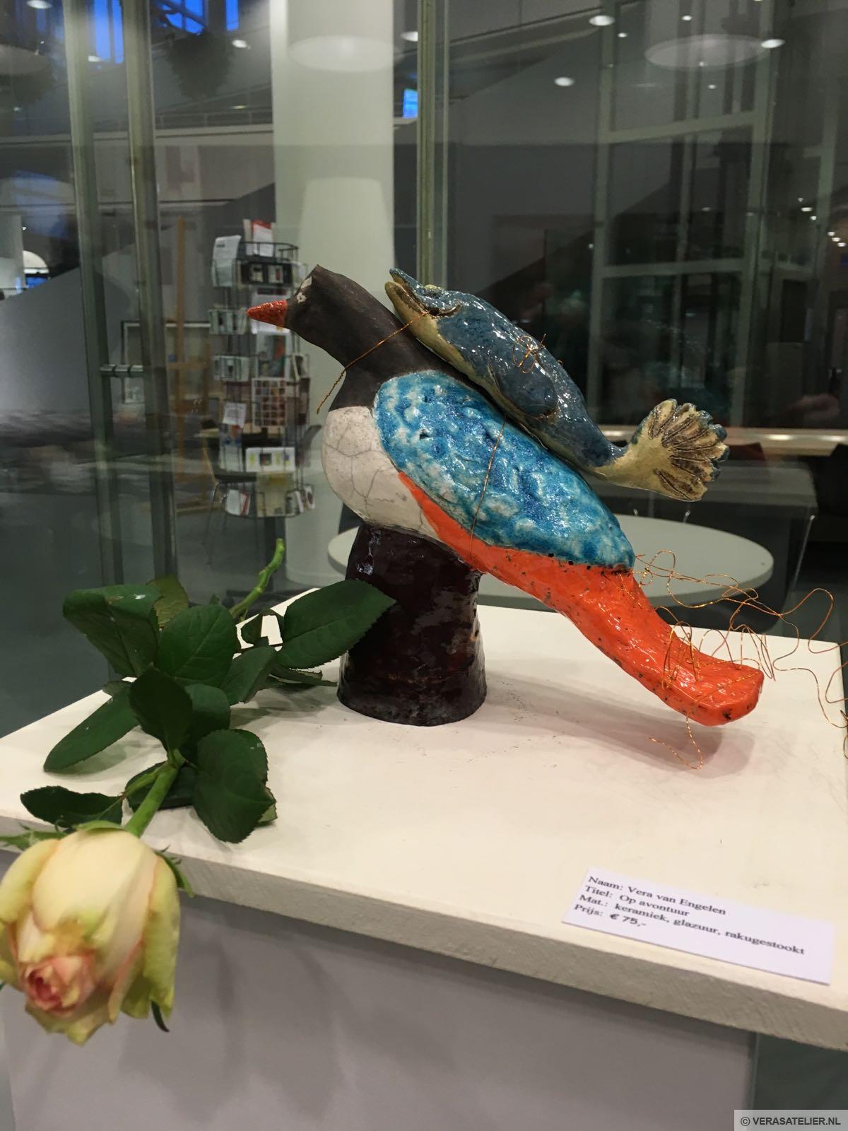 Vrije inspiratie op een Paradijsvogel. Gemaakt voor de expositie Jeroen Bosch in Keramiek